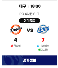 한국시리즈를 향해 진출할 팀은 누구일까요? 두 팀간의 치열한 대결 기대 부탁드립니다. 감사합니다.